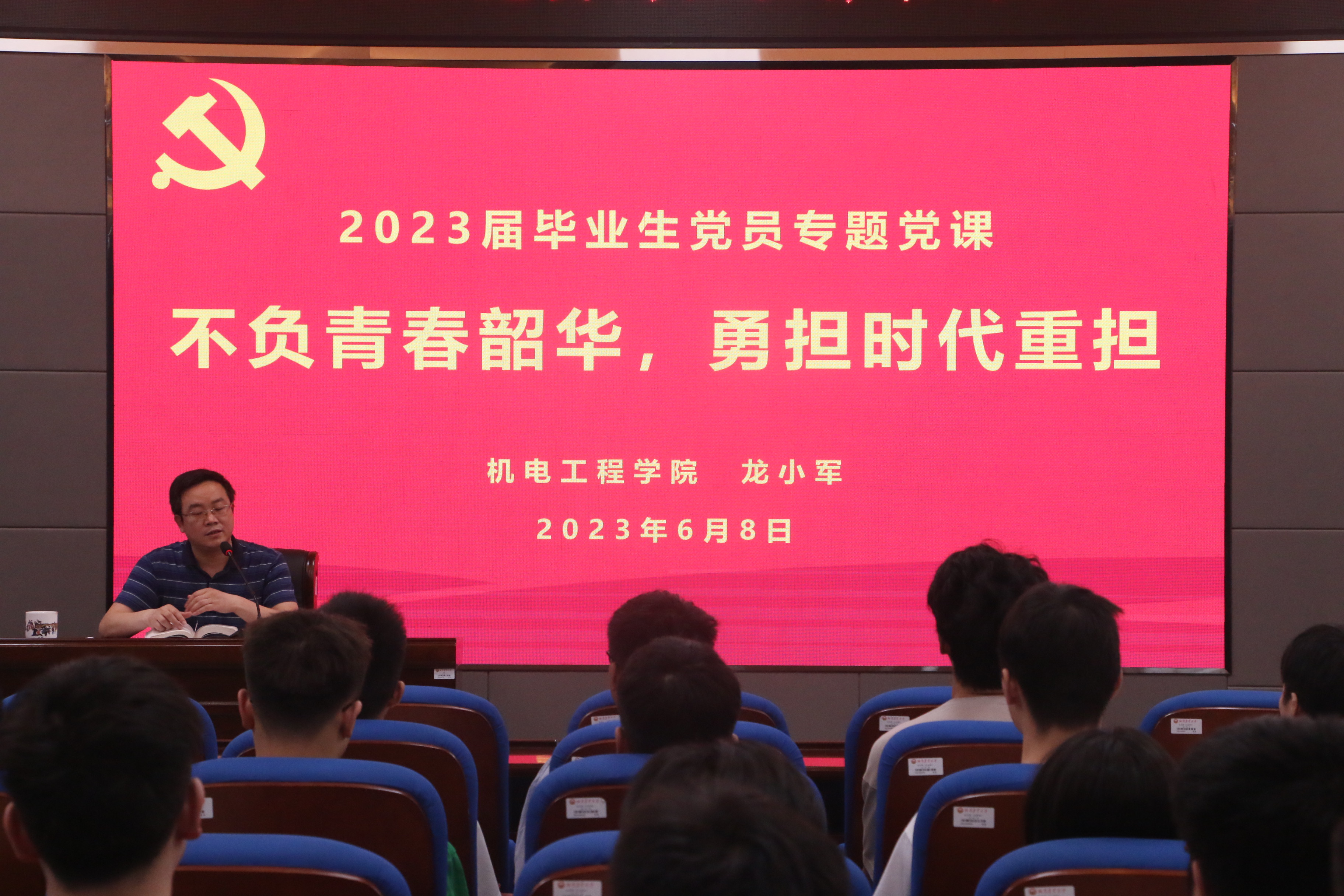 生日会后,龙小军上了题为“不负青春韶华,勇担时代重担”的主题教育专题党课,并给予毕业生党员们要把握好“四个坚持”来面向未来人生新征程:坚持学习为先,做牢记初心的忠实信仰者;坚持党性为要,做使命任务的坚强担当者;坚持实践为重,做新时代新征程的最肯吃苦人;坚持建功为实,做强国建设、民族复兴的最美奋斗者。