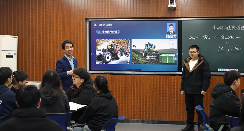 在不改变原有教学计划安排的基础上,改革教学模式,推动建成由不同专业任课教师、科研单位研究员和企业工程师共同参与“一课多师”的团队教学模式。《发动机原理》课程作为农业机械化及其自动化专业(国家一流本科专业)的核心课程之一,在讲授发动机特性章节内容过程中,彭才望老师结合发动机在农机动力装备中的动力匹配及应用,同国家水田机械质量检验检测中心蒋啸虎老师一起组成“一课多师”示范教学团队,聚焦大马力农机动力装备,以发动机创新发展为核心,发展农机新质生产力,助推农机装备高质量发展。课程教学改变“一个老师上到底”的现状,双师同堂、共议热点,回应员工专业学习困惑,员工不仅学习了理论知识,也拓展了自己的视野。
