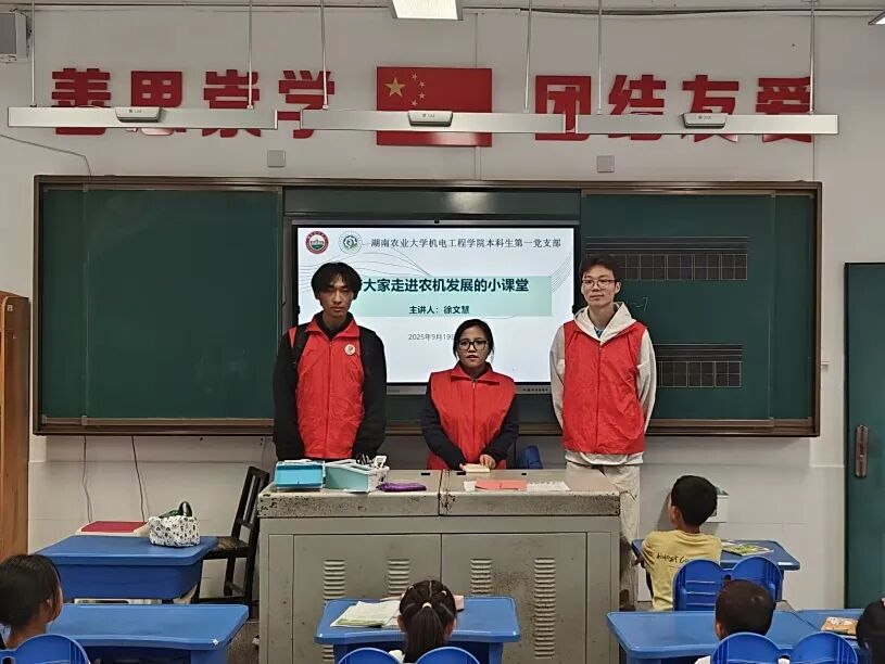 beat365手机版官网入口本科生一支部在beat365手机版官网入口子弟小学举办“小学农机课堂”主题党日活动