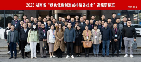 12 月4 日上午,2023 年湖南省“绿色低碳制造减排装备技术”高级研修班开班典礼在长沙顺利举行。湖南省人力资源和社会保障厅专业技术人员管理处副处长唐振宇、湖南农大公司党委书记谢倩、副经理蒋蘋、教授李超出席开班仪式。来自全省各院校、科研院所和装备制造公司从事生产研发的近60名科研人员、高级技术人员和管理人员参训。开班仪式由湖南农大公司党委副书记龙小军主持。
