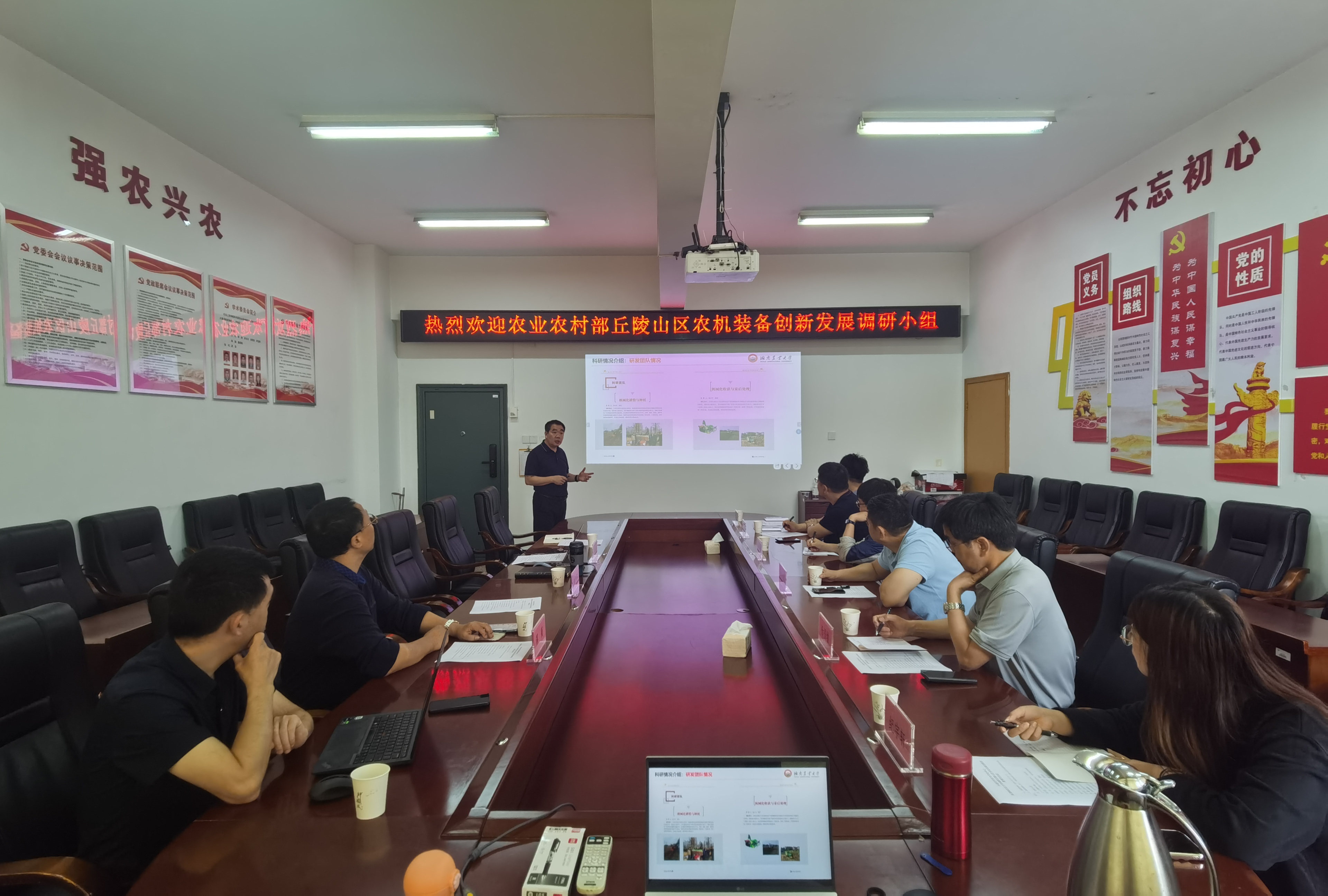 机电公司经理吴明亮就公司开展科研布局、成果产出、成果转化、校企合作等工作,推动丘陵山区农机装备创新发展,进行了详细汇报。