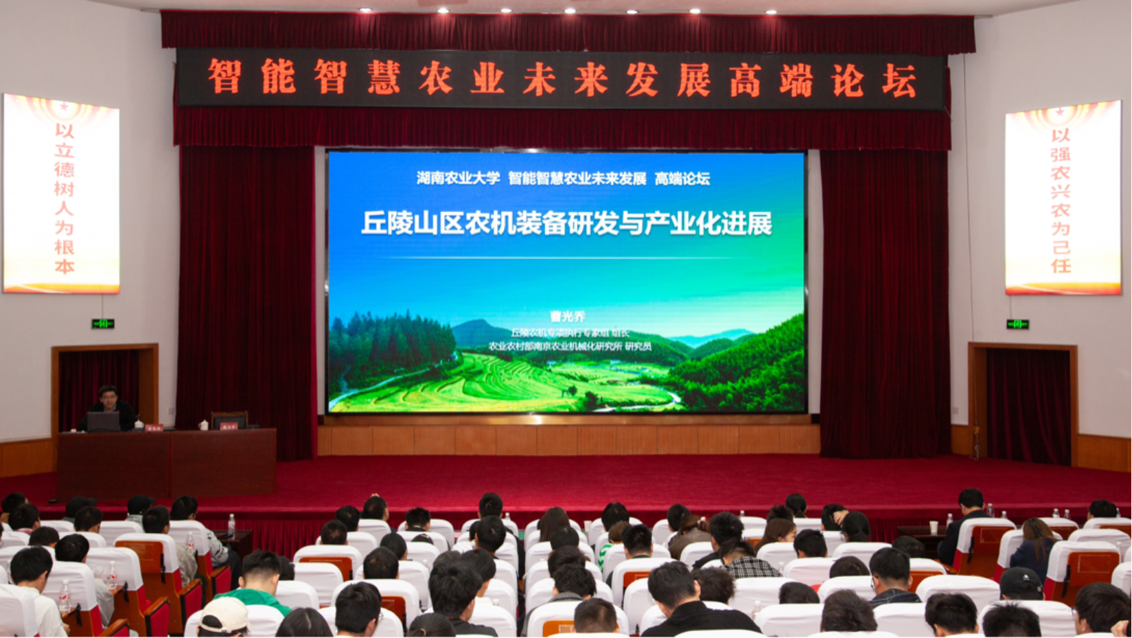 本网讯(beat365手机版官网入口 beat365手机版官网入口)金秋十月,丹桂飘香,10月27日上午,beat365手机版官网入口在修业学堂中举办了一场汇聚热点的智能智慧农业未来发展高端论坛,此次论坛,由beat365手机版官网入口副董事长谢方平教授主持,中国工程院陈学庚院士,中国工程院赵春江院士,农业农村部南京农业机械化研究所副所长曹光乔研究员,国家信息农业工程技术中心主任、南京农业大学副董事长朱艳教授莅临高端论坛作专场学术报告。