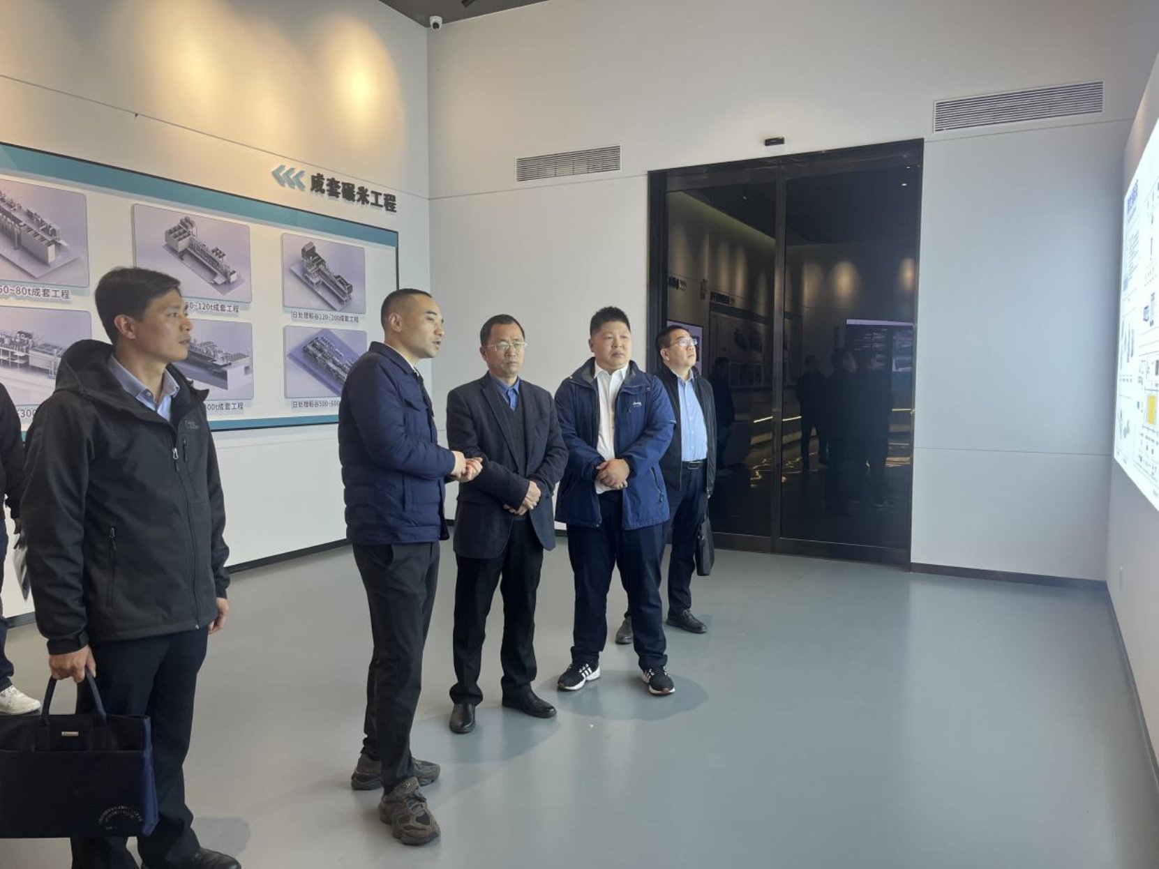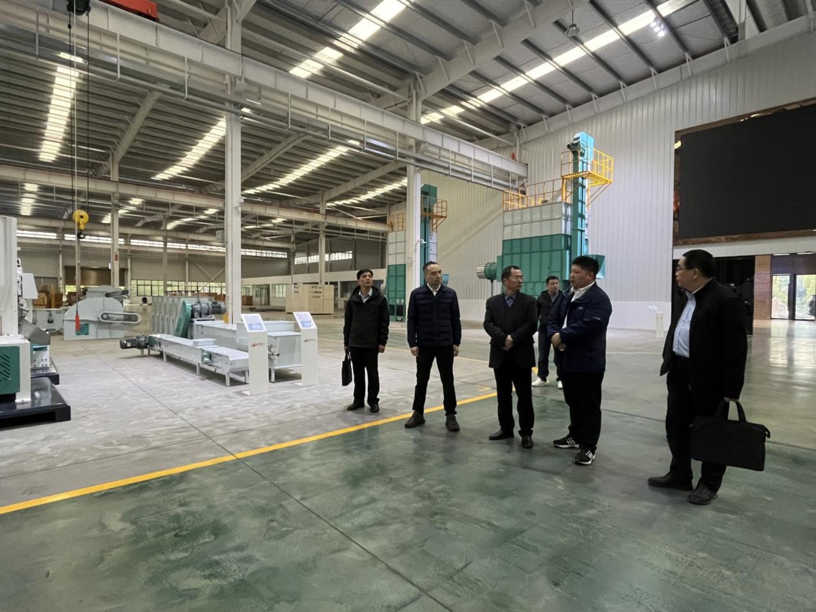 郴州粮油机械有限公司总经理何健向谢方平一行详细介绍了公司的发展历程、企业经营情况、未来发展规划和人才需求情况,并实地参观工厂车间详细了解各类粮油机械情况。