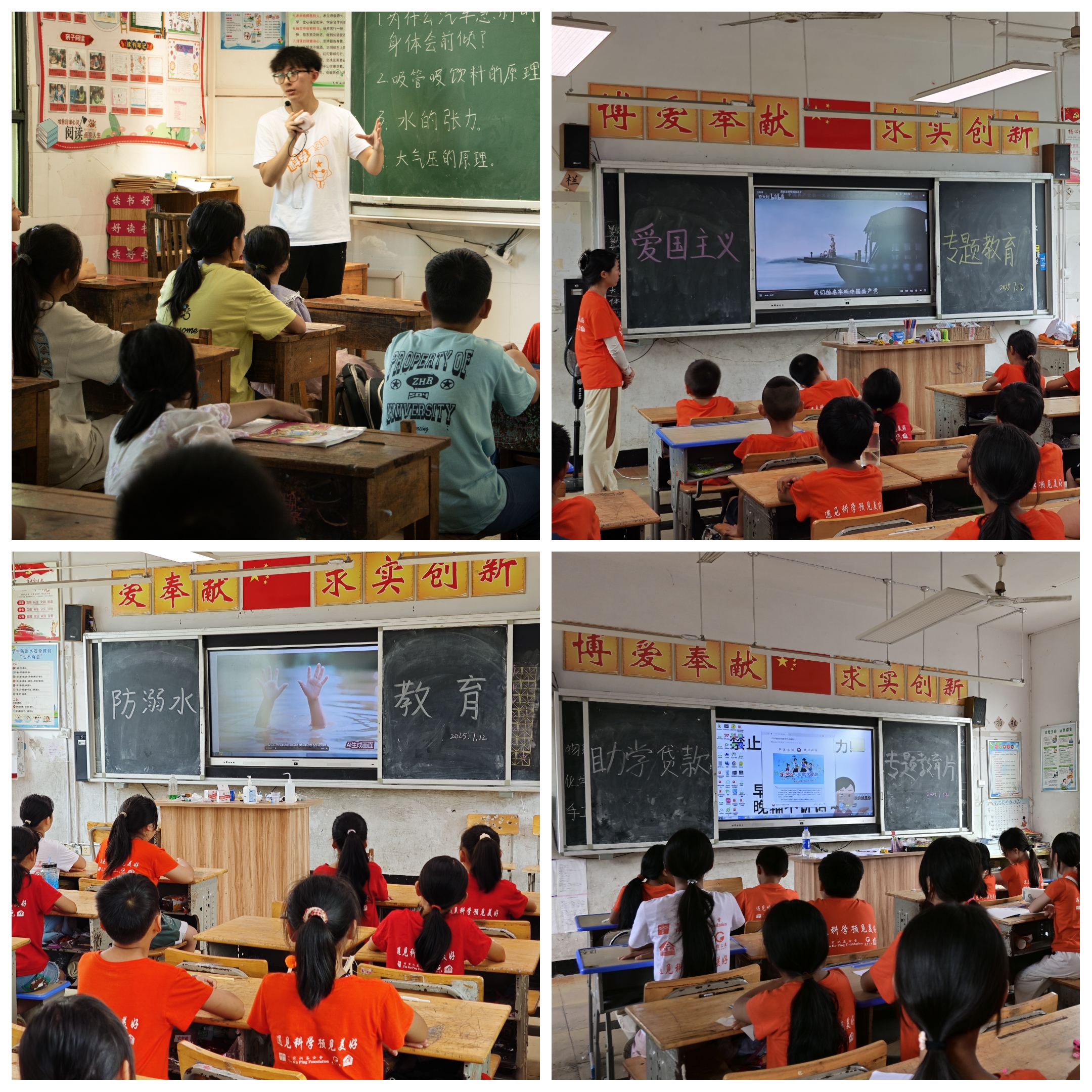 除了科普教育,系列特色宣讲更显育人温度。爱国主义教育课上,志愿者们带着孩子们绘制“我心中的祖国”长卷,用浏阳河、天门山的地域元素串联起家国故事;防溺水宣讲采用“情景模拟+互动游戏”形式,让“六不准”安全知识入脑入心;针对山区家庭普遍关注的教育问题,志愿者们化身“政策讲解员”,用心解读生源地助学贷款申请流程,为农户家庭提供一对一咨询。